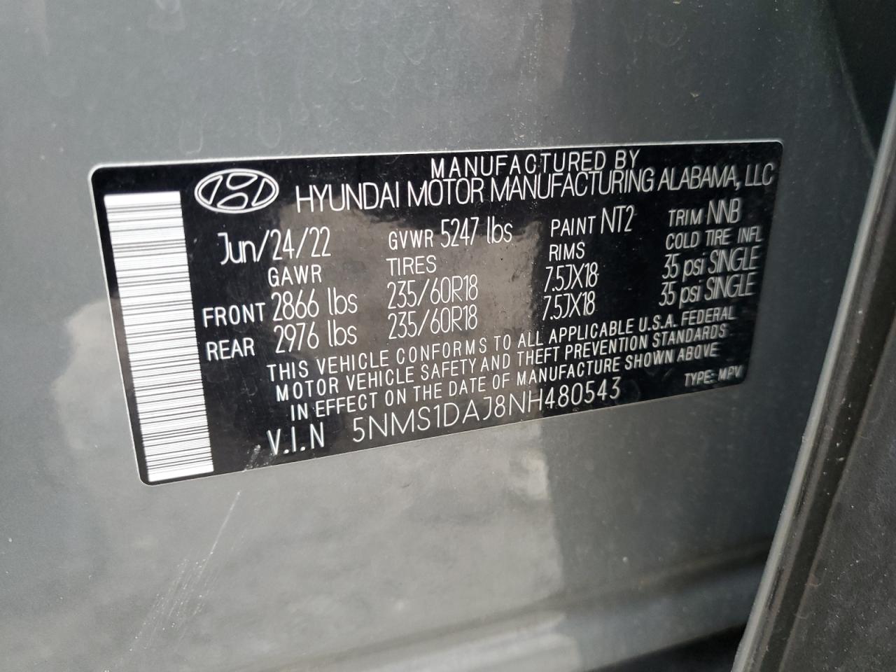 Hyundai Santa Fe 2022 SE 5NMS1DAJ8NH480543